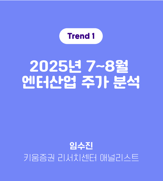 I. 2025년 7~8월 업종별 주가분석 1. 엔터테인먼트 1) 엔터, 숨 고르기 이후 다시 반등세
