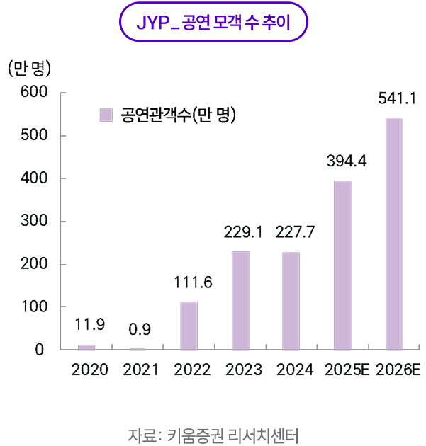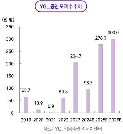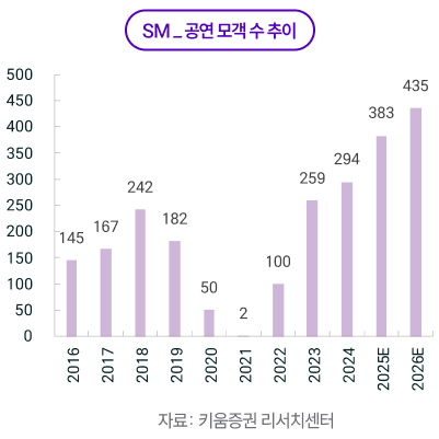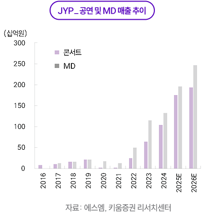 하반기 후반에는 메가 IP의 투어 일정과 상시 MD의 SKU(Stock Keeping Unit) 확대, 팝업스토어 확대가 맞물리며 실적의 ‘질’이 개선될 전망이다. 핵심 지표인 매진율·회당 모객·ATP 상승이 이어지는 가운데, 현장 MD 비중 확대와 온라인 상시 판매의 결합이 ASP(객단가)와 회전율을 동시에 끌어올리고, 생산 볼륨 증가에 따른 원가 레버리지로 수익성 구조가 개선될 가능성이 높다. 중국에서는 공연 타임라인의 불확실성이 남아있더라도 팝업스토어·플랫폼 기반 비(非)공연 매출 채널이 이미 구축되어 있어 노출도와 팬덤 규모를 선제적으로 확대하는 단계이며, 이는 2026년 투어 로드맵이 가시화되면 경우 추가적인 티켓·MD 수요로 환원될 여지가 크다.