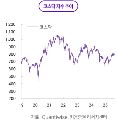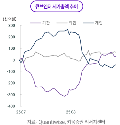 7~8월 엔터 주가는 펀더멘털*보다 매크로 요인**이 더 크게 작용했다. 반도체 대형주로 수급이 쏠리면서 성장 업종 전반의 상대 매력이 약해졌고, 엔터도 같은 압력을 받았다. 여기에 한한령 완화에 대한 기대가 점차 낮아졌고, 3분기 특성상 아티스트 활동 공백이 늘어 이벤트 모멘텀이 약화했다. 결과적으로 실적을 앞둔 불확실성과 수급 분산이 겹치며 단기 변동성이 커졌다.