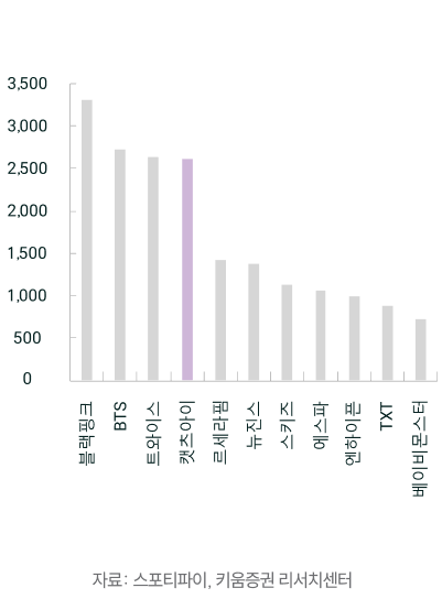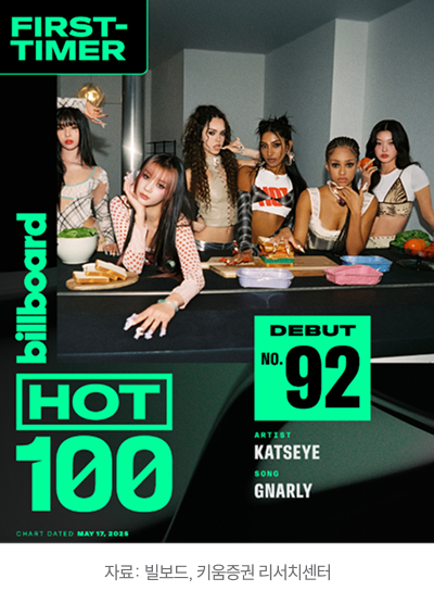 캣츠아이(KATSEYE)의 질주는 ‘해외 현지화 그룹’ 전략의 유효성을 시장에 각인시켰다. 올해 들어 이들은 빌보드 핫100과 영국 오피셜 차트에서 장기간 순위권을 유지하며, 단발성 바이럴이 아닌 ‘지속형 소비’로 성과를 증명하고 있다. 특히 스포티파이 월간 리스너 2,800만 명을 돌파(국내 아이돌 중 세 번째 수준)한 지표는 스트리밍 코어 팬덤과 라이트 팬덤이 동시에 확장되고 있음을 시사한다. 불과 1~2년 전만 해도 현지화 그룹에 대한 기대는 미미했지만, 캣츠아이는 케이팝 기획력이 현지 문화적 맥락, 언어, 제작 인프라와 결합할 때 글로벌 시장에서 ‘보편적 팝’으로 작동할 수 있음을 보여줬다. 요컨대 “현지에서 만드는 케이팝”이라는 역설적 조합이 이제는 엔터사가 나아가야 할 본류 전략으로 자리 잡는 중이다.