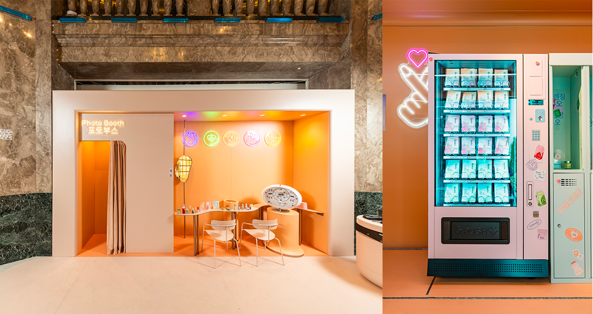 한국식 포토부스와 자판기를 재현한 예쁘다 팝업스토어 전경(출처: Yepoda) |