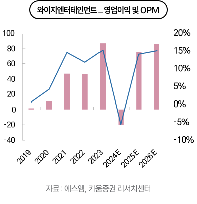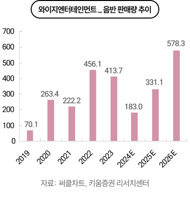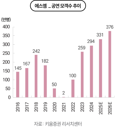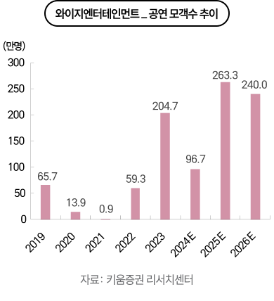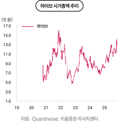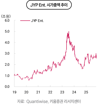 또한 SM은 신인 IP의 성장세가 뚜렷하다. NCT WISH와 RIIZE(라이즈)는 각각 연간 300만 장, 190만 장의 앨범 판매량을 기록하며 팬덤 확장 속도를 높였다. 내년 상반기 신규 보이그룹 데뷔, 글로벌 투어 확장 등도 예정돼 있어, 장기 성장성은 여전히 유효하다. 다만 시장은 이미 앞서 언급한 것들을 이미 상당 부분 선반영한 상태로, 이제는 서구권 시장 개척 등 ‘다음 스토리 라인’을 준비해야 하는 시점이다.