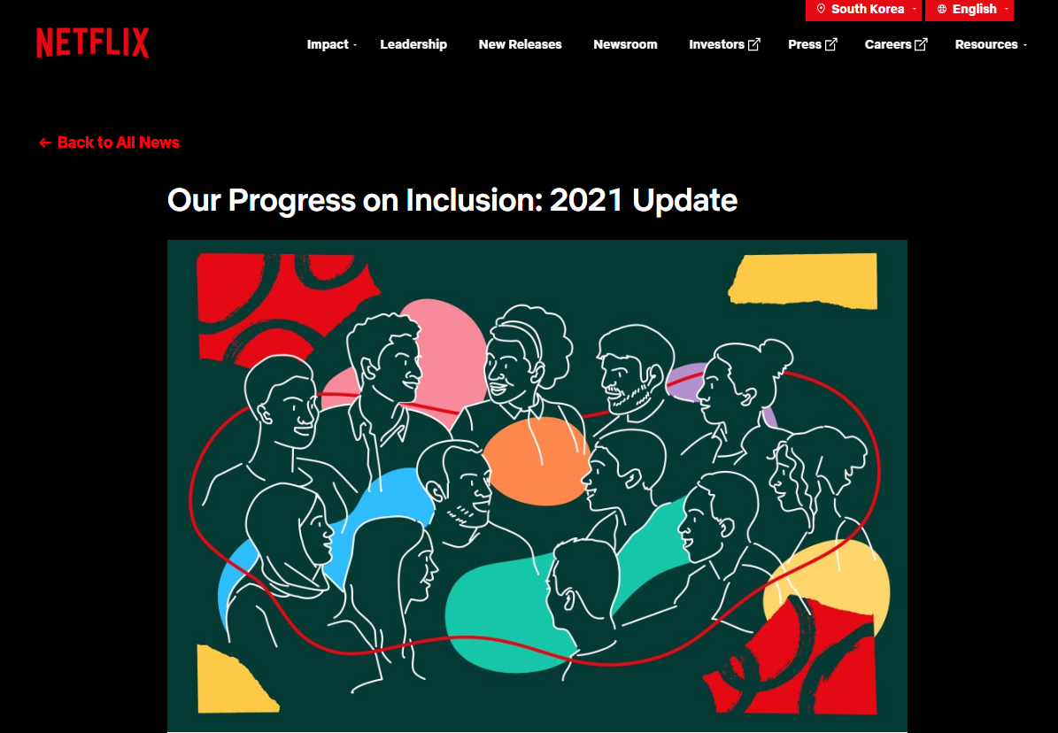 2021년 넷플릭스가 발표한 「다양성 보고서(Inclusion Report)」 (츨처: Netflix 홈페이지 캡처) |