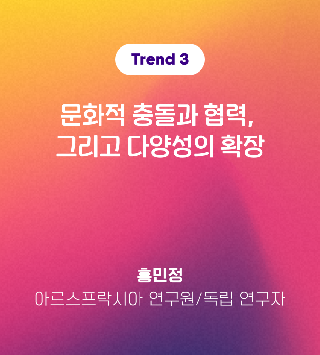 ์ฒด์ ํ์ฅ, ํ๊ตญโ๋ฒ ํธ๋จ ์ํ ํ๋ ฅ์ ์ฌํ๋ ํ๋ฅ๊ฐ ๋จ์ํ ๋ฌธํ ์์ถ์ ๋์ด ๋ค์ํ ์ง๋จ์ด ์ฐธ์ฌํ๊ณ ์ํธ ์กด์ค์ด ์๋ํ๋ ๋ฌธํ ์ํ๊ณ๋ก ์งํํ๊ณ ์์์ ๋ณด์ฌ์ค๋๋ค. ์ด๋ฒ ํธ์์๋ ์ด๋ฌํ ๋ณํ์ ์ฅ๋ฉด๋ค์ ๋ชจ์ โ๊ทธ๋ผ๋ฐ์ด์